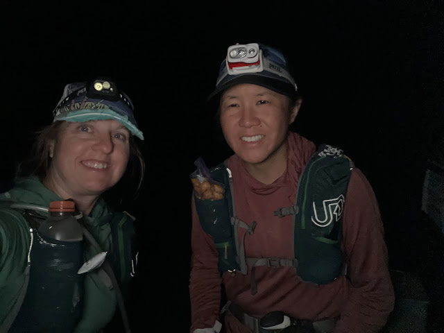 It was out here in this section that I felt my lowest. Stacey was charging up the hills in front of me, and I was warm, tired and just trying to keep from redlining. Everything hurt, and I found myself wishing to be anywhere else. In bed. On a short trail with my daughter. Floating on my paddleboard. I could feel the panic rising, threatening to send me into hyperventilation. "What do you see around you?" I asked. Shadows. The moon. Gravel. "What do you hear?" Grounding techniques, learned the hard way. I let the tears come, and then I remembered my mantra I had chosen for this adventure. "Feel bad. But don't feel bad for yourself."