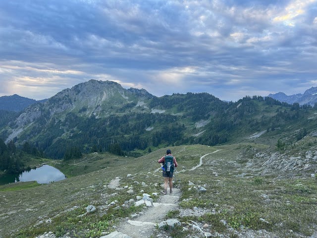 I was so ready for the break I had promised myself at the summit of that pass. But Stacey was worried about the clouds gathering in the distance, and she wanted to keep moving over the pass. And this is when I came straight into self knowledge about how our minds can set us up when we lean too heavily into our expectations. I wanted to stop. I expected to stop. So when I only had five minutes to take care of my feet, my mind melted. Everything became so much harder because my expectation did not match my reality. Oh how wanted to throw myself off that mountain in that moment.
