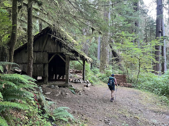 We took a break at the closed Hayes Ranger Station, taking in a hearty lunch and napping for another 20 minutes. The climb to Hayden Pass still loomed - 8.5 miles and 4,400 feet of climbing on unknown trail that could be maintained or not. We were starting the climb around 12:30 pm, which meant the heat of the day was still ahead. And while it was cooler, it was certainly more humid. I did my best to fix my feet and to prepare myself for the challenge ahead.