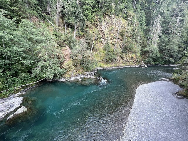 The beautiful waters of the Elwha River. You have to hike here now to see them because of damaged road.