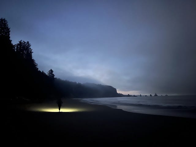 That's how I ended up here. At the start line of a 190ish mile Fastest Known Time attempt across the Olympic Peninsula at 4:38 am on the morning of August 14, 2022. Scared, uncertain, and pretty much convinced that I was making the biggest mistake of my life.